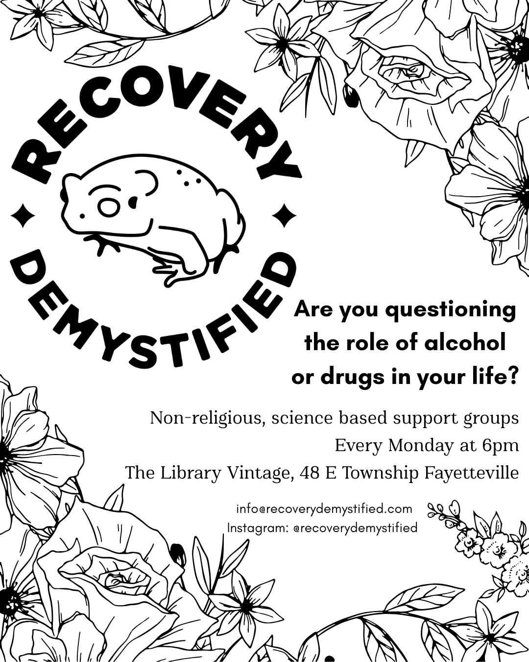 Recovery Demystified is a 501c3 organization based in Northwest Arkansas. We provide non-religious, science based addiction recovery support groups, social events, and a podcast. We focus on empowerment and meeting people where they are at in a judgement-free environment.